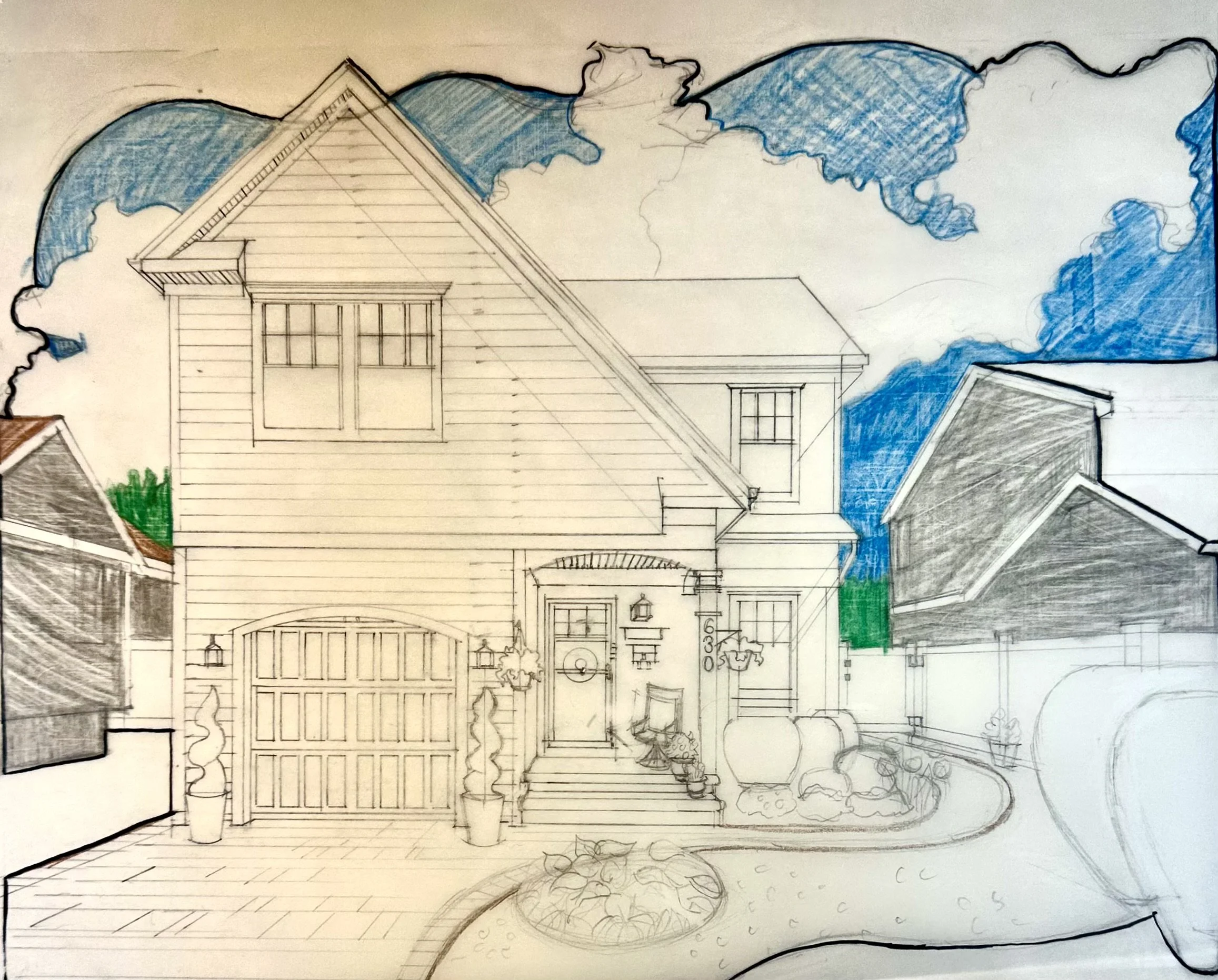 A realtor commissioned Jennifer Skopp to create this Watercolor House Portrait of this Lake Como, Belmar, New Jersey Home. She was going to give it to her client, the new owner for a closing gift.